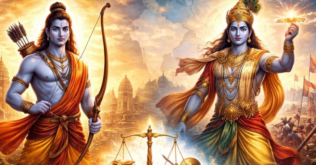 - Dharma is eternal, but its application must respond to time, threat, and scale. India today needs Ram-Rajya to morally educate society and Krishna-Neeti to strategically defend it—together.
